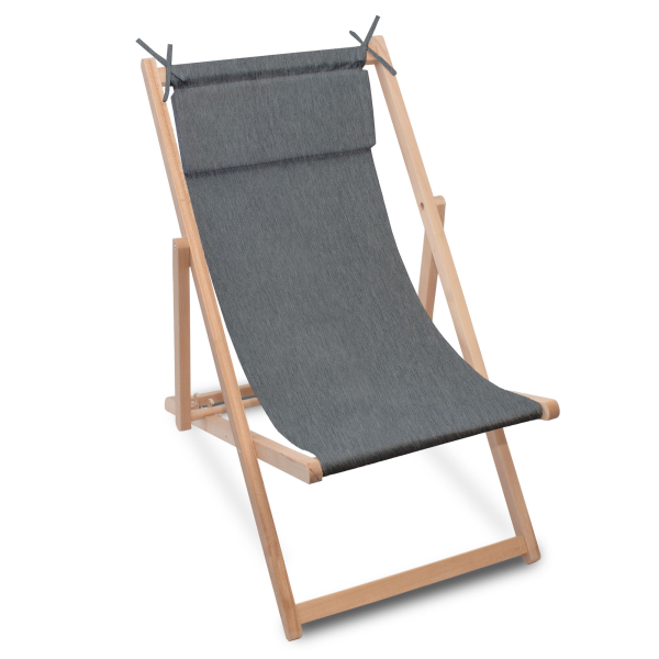 Drevené plážové lehátko s vankúšom Imitácia denimu Iron Slate