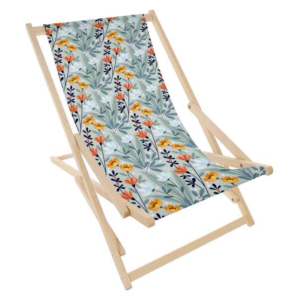 Konštrukcia lehátka je vyrobená z masívneho bukového dreva a prestieradlo je vyrobené z pevná polyesterová tkanina, digitálne potlačená sublimačnou technikou. Je odolný voči vystavenie UV žiareniu a vyznačuje sa intenzívnymi farbami. Certifikát OEKO-TEX ® STANDARD 100 zaručuje vysokú kvalitu tkaniny a bezpečné použitie.